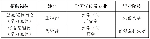 高校毕业生拟聘用人员公示(第二批)