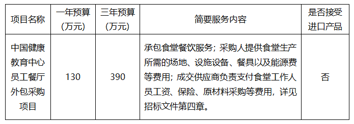 项目名称:中国健康教育中心员工餐厅外包采购项目