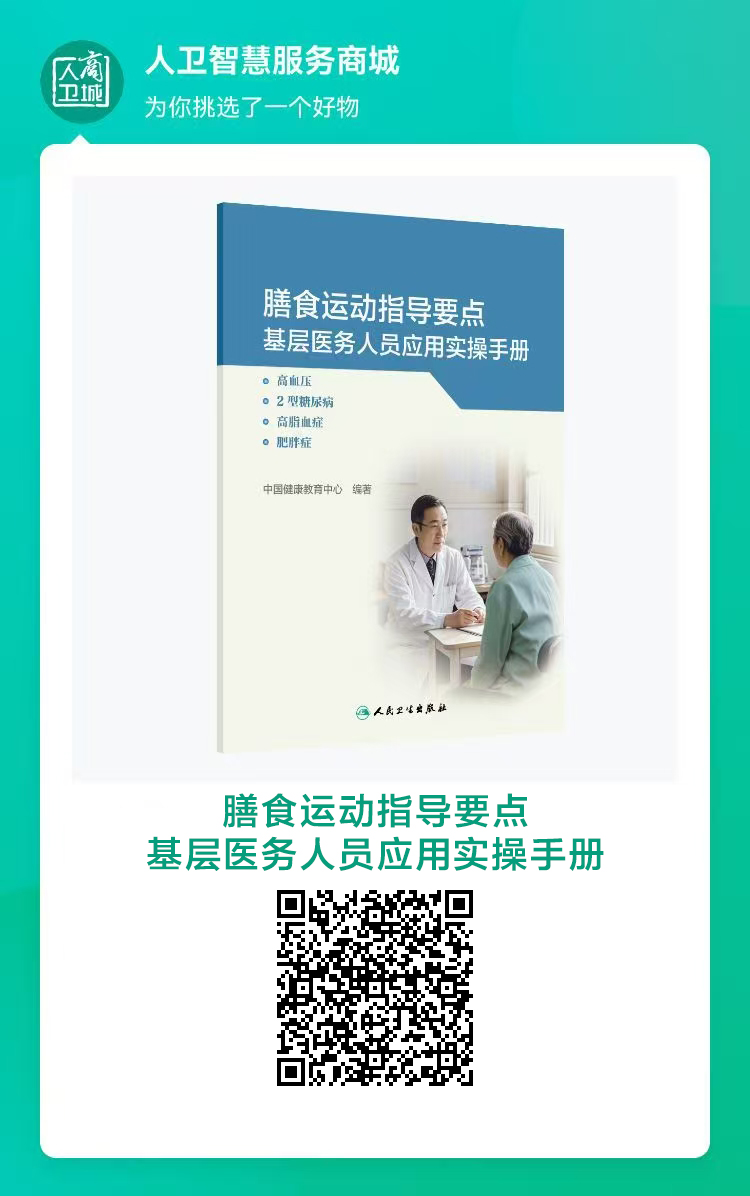 欢迎医疗卫生机构和医务人员宣传、推广应用膳食运动基层指导要点。需要者可扫描下方二维码订购《膳食运动指导要点基层医务人员应用实操手册——高血压、2型糖尿病、高脂血症、肥胖症》。