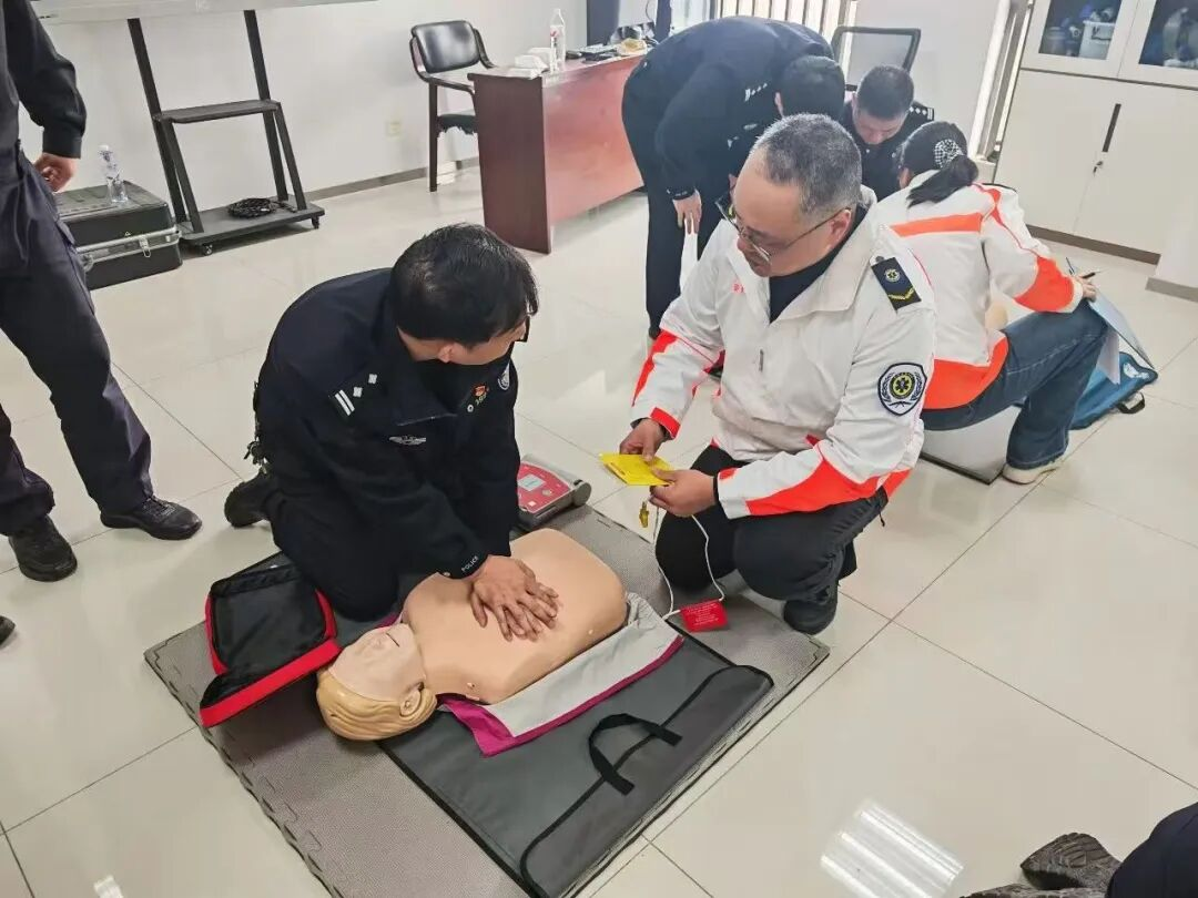 为切实提升一线警务人员应急救护能力,讲座紧扣“实战急救”,精准对接警务执勤中暴力冲突、交通事故、抓捕现场及突发公共卫生事件等场景。来自市急救中心的导师们依次围绕心肺复苏术、创伤急救技术、突发事件应急救援等课题开展理论讲解,提炼关键知识要点。在实操教学环节,导师团队现场示范、手把手指导,让参训人员沉浸式掌握心肺复苏、创伤处理等标准操作流程。针对参训人员大多为非医疗专业背景,培训注重将专业急救操作提炼为“肌肉记忆”式动作要领,确保参训人员在高压、嘈杂、光线不足等极端执勤环境下,能快速、准确开展应急救护。